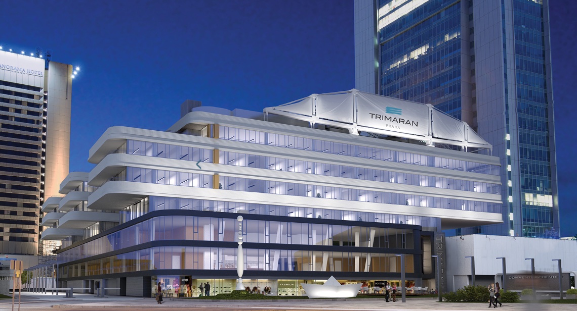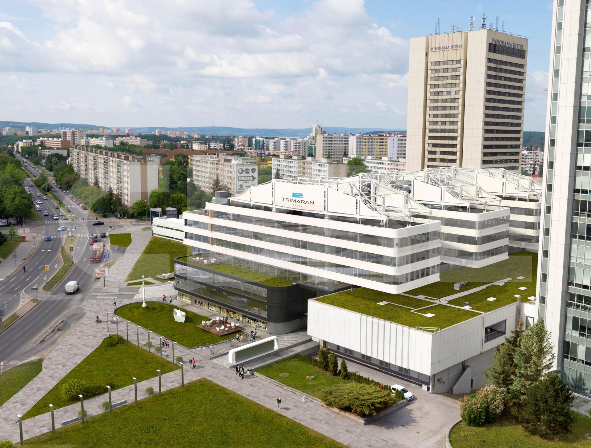 Exkluzivní podnájem kanceláří Praha Pankrác v posledním patře moderní administrativní budovy Trimaran zkolaudované v roce 2019.